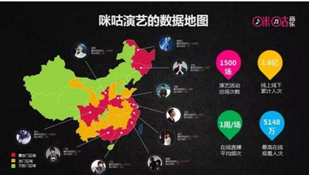 在传统线下演艺市场,咪咕音乐运用大数据、曲库版权、行业资源、中移动大市场等优势,每年在全国范围内将进行数百场巡演活动,从2007年至今已执行了1500余场活动,参与艺人之多、覆盖面之广,无人能望其项背。通过对地域、明星、消费习惯、音乐喜好等维度的深度分析,咪咕音乐为不同区域的用户提供更有针对性的演出。譬如,张靓颖是四川地区最受欢迎的艺人,便有的放矢的增加张靓颖在四川区域的活动场次;周杰伦在广东区域呼声更高,参与广东区域演艺活动便更频繁;江苏区域受众更年轻化,人气偶像韩庚参与的频度就会更高。这一措施更切实有效的满足了用户的需求,受到当地用户的强烈好评。