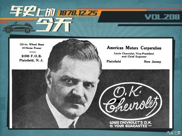 [汽车之家 车史上的今天] 1878年12月25日,一位名叫路易斯·雪佛兰(Louis Chevrolet)的法国裔美国赛车手、汽车工程师在瑞士出生,尽管身世国籍稍微有点乱,但只要看到姓氏,您可能就猜到他的身份了,没错,他就是雪佛兰汽车的联合创始人。