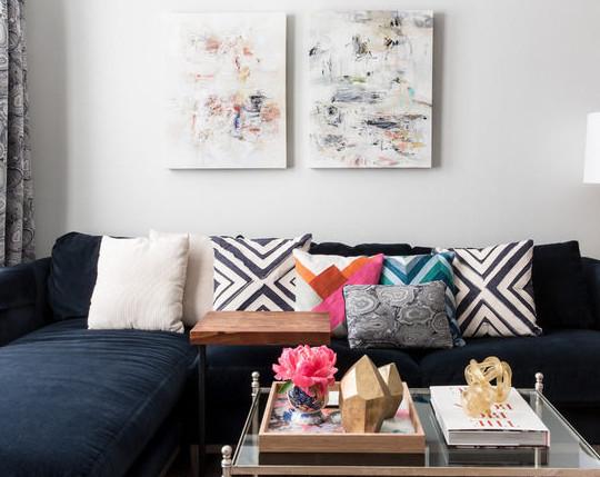 明亮的采光让淡色的客厅也暖暖的,艺术挂画填充了空间,让生活空间不再单调。