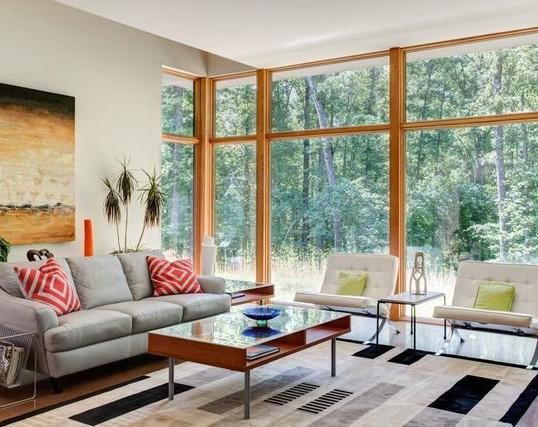 客厅虽然不大,大面积的玻璃窗让小客厅也有了大户型视觉,窗外的绿景成荫成了客厅最美的背景墙,室内几株植物与室外遥相呼应,趣味无限。