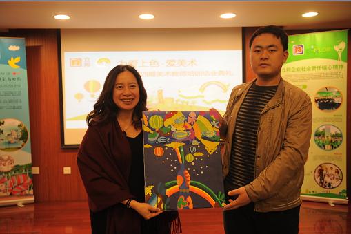 美术教师代表向立邦公司赠送礼物