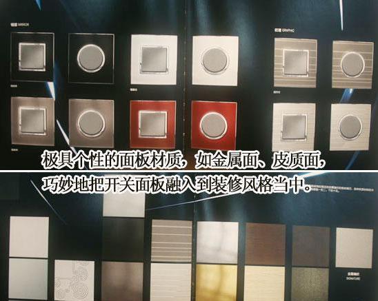 外观的独特性,打破了原先开关面板的单一设计,而且主打黑色和白色,这是非常酷的色彩搭配。还配有其他极具个性的面板材质,如金属面、皮质面,都是以前没有的设计运用。所以它的问世给我们的装修设计添上了另类设计元素,巧妙地把开关面板融入到装修风格当中。