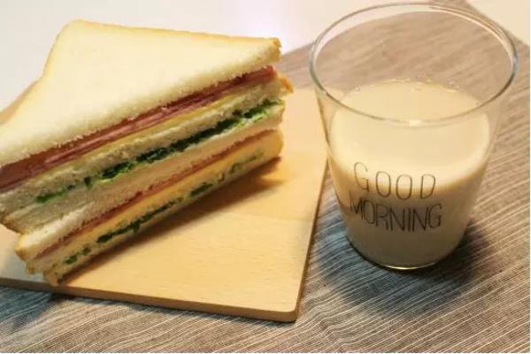 这款三文治不是普通常见的芝士火腿三文治,添加了乳酪并且配菜选择了苦菊,苦菊是非常适合直接生食的一种青菜,它的好处也很多不仅包含各种微量元素和维生素蛋白质,并且冬季室内空气不流通多吃苦菊还可以抗菌,增强免疫力,总之好处非常多,让我们在享受美食的同时又能获得一份健康。