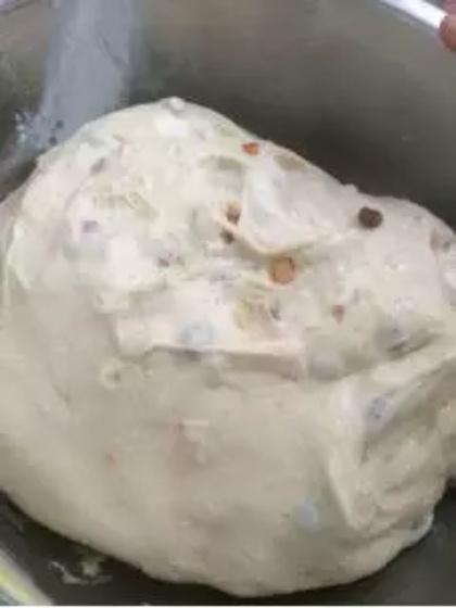 2.种面中的原料混合均匀,盖上保鲜膜,放到温暖的地方,放置2-4小时。