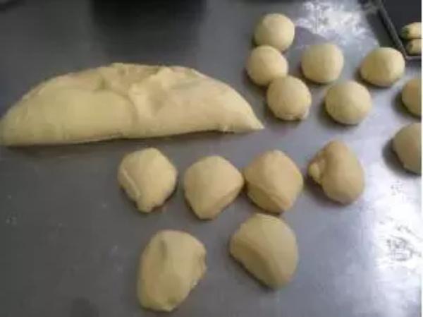5.把面团分割成60克一个,滚圆,松弛15分钟