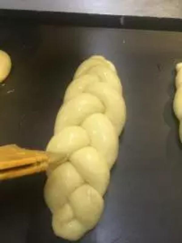 配方:高筋粉800克、低筋粉200、细砂糖120克、盐12克、鸡蛋300克、酵母16克、奶油250克、牛奶300克、鸡蛋(刷蛋液) 1个