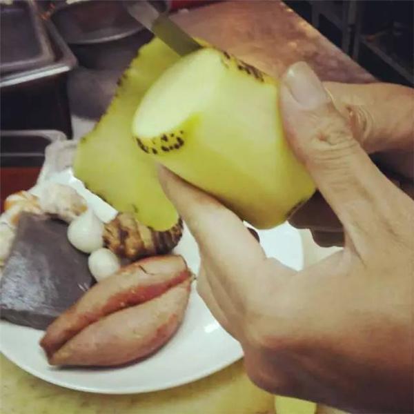 1、蔬菜准备:将白萝卜、土地、芋头、山芋等切块处理备用(白萝卜去皮后切成约4厘米厚度块儿;土豆去皮、山芋带皮洗净切约2厘米厚块并放置在清水中备用)。