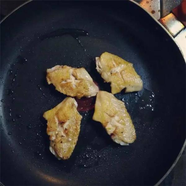 3、将魔芋加水煮沸后约2-3分钟取出;白萝卜、土豆、山芋块放入沸水中预煮至可用牙签扎入得程度取出;海带、豆腐等食材放入水中炒熟;不粘锅中火烧热,加入少许油,放入鸡翅两面煎烤至金黄后取出。