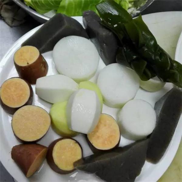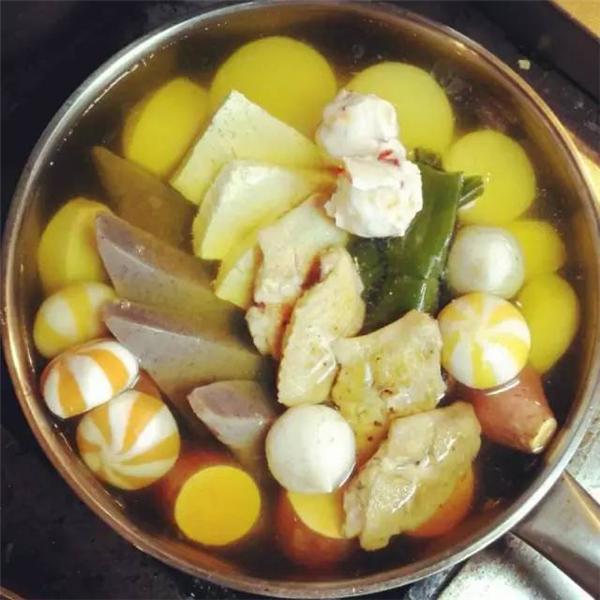 食材:白萝卜、海带、鸡翅、魔芋、土豆、芋头、山芋、花枝丸(鱼丸等)、豆腐、洋白菜