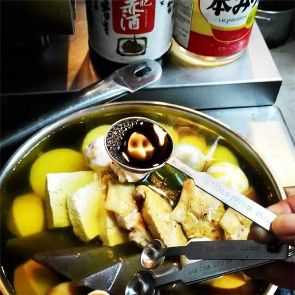 6、将汤底与准备好的食材一同放入砂锅中,加入3勺清酒(日本酒)、3勺料酒、3勺淡味酱油、一小勺盐后加盖煮,至水沸腾后小火慢煮20分钟后,即可食用。