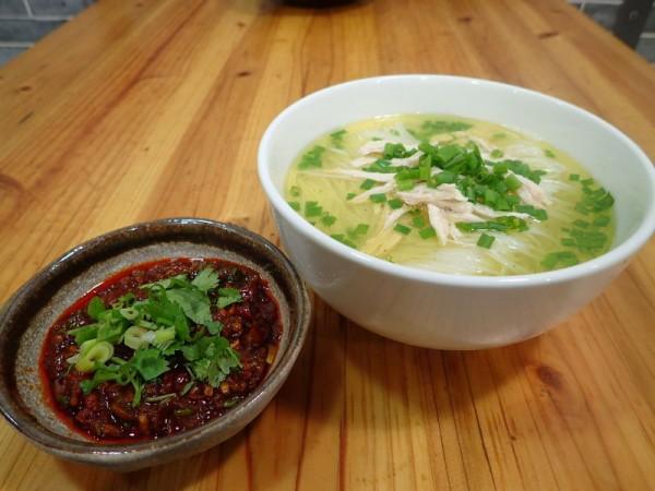 鸡爪子3.5元1根,在一个大锅里面烹制好了,直接要几根夹几根。再舀上一点点汤汁。刚舀出来的鸡爪要放凉一会儿,不然超级烫手。鸡爪子入口确实耙糯入味,轻轻的一抿嘴,肉肉就全下来了。麻辣的味道很重,但是越吃越停不下嘴。绝对能称得上是鸡瓜中的战斗鸡。鸡汤银丝面:5元,我个人最最最爱细面啊!细面入味!香浓不腻,汤也好喝。如果喜欢重口味的,叫小妹给你来一碗豆瓣蘸水,下面好吃的很哦。