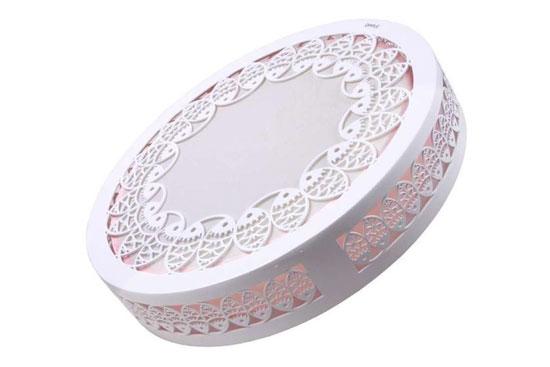 欧普吸顶灯具有仿传统花灯制造工艺的透光花纹,让灯光穿过花纹的透光小孔,透射出变幻的光彩,让花朵图案绚烂美丽。灯罩材质选用PMMA亚克力,比普通亚克力透光率高出一倍左右,使室内光线愈加亮堂。