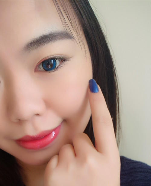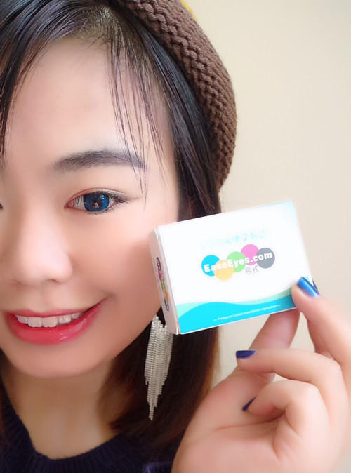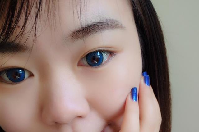 这次是突破了一下自己对于美瞳色彩的选择,因为生活中的我比较低调,一般选择的都是黑色、棕色、巧克力色之类的美瞳,跟瞳孔的颜色比较接近,看上去很自然,而这种颜色比较靓丽的确实是第一次,之前有尝试过紫色,可惜失败了,大概是因为妆容打造不合拍,所以留下了阴影,这次看到这款海蓝色真的是来回纠结,最后还是买了下来,毕竟蓝色是我最爱的颜色~