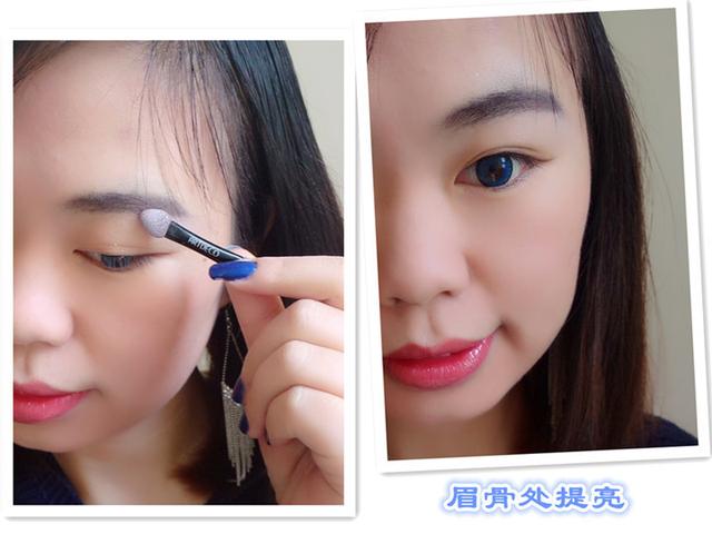 1号色在眉骨处提亮,可以让眉形显得更为精致,用米白色或者珠光白都行~