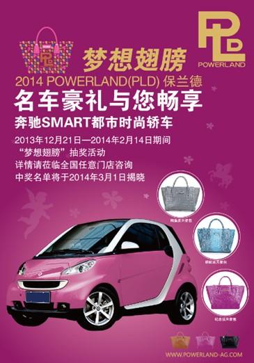 在活动现场,森碟爸爸将会与您分享他对于时尚和保兰德的独特想法,并与您交流互动。不仅如此,森碟爸爸田亮还将作为特邀嘉宾启动2014“梦想翅膀·名车豪礼与您畅享”活动,此次活动将送出多台奔驰SMART与全球限量版典藏天使包等豪礼。12月21日-2月14日,“梦想翅膀·名车豪礼与您畅享”震撼启动,活动详情请莅临POWERLAND(PLD)保兰德全国各大门店咨询。