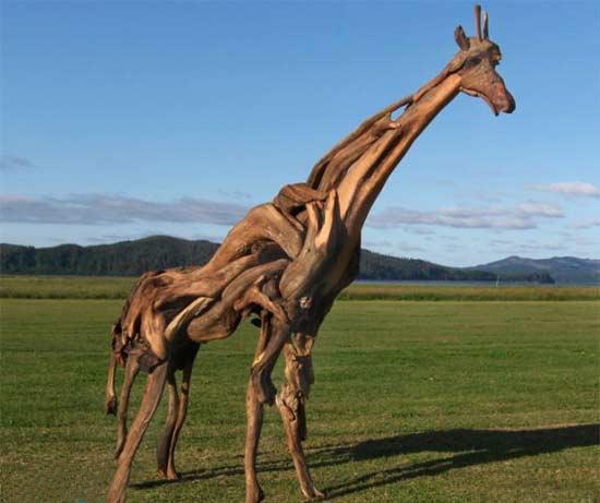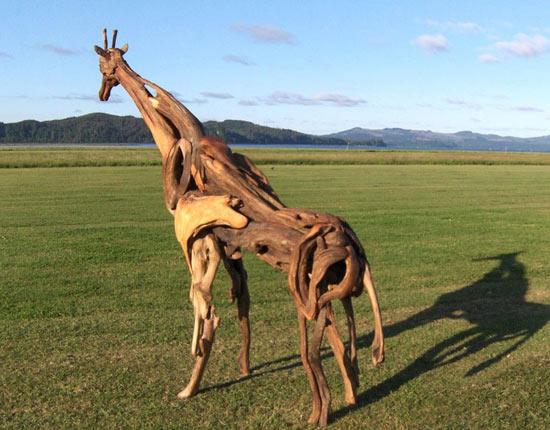 Jeffro Uitto用漂浮木雕刻的长颈鹿