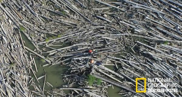 除了大段的漂流木,大奴湖收获的还有木质纤维。对当地的生态系统来说,它们可是现成的优质养分。