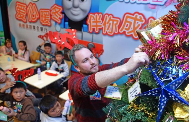 在欢乐有序的氛围中,工作人员为孩子们端上梦寐已久的美食——石榴派、原味鸡、饮料等等。在香味四溢的餐桌上,唯独一个小女孩紧紧捂着小嘴,任凭志愿者如何劝说也不肯品尝一口。“真的是免费的吗?”在得到了肯定的答案后,她怯生生地继续提问:“那我能带回家和爸爸妈妈一起吃吗?”餐厅工作人员被女孩的爱心感动,特意制作了全家桶让她带回家和父母分享。被小伙伴们称为“大豪”的男孩,是名副其实的“孩子王”,他不仅主动给没有上过英语课的低龄儿童解释故事内容,还积极帮助志愿者分派食品。当记者询问他对双语故事《圣诞大营救》中哪段情节印象更深刻的时候,他毫不犹豫地选择了村民们回馈托马斯的段落。“现在帮助我们的志愿者这么多,我希望自己长大了,也能回赠爸爸妈妈、叔叔阿姨们的关爱,告诉他们,感恩图报,爱需要传递。”