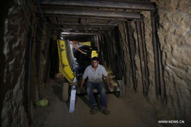 面积365平方公里的加沙地带西面临海,东、北两侧与以色列接壤,只有南部拉法一带与埃及相邻。围困之下,生活必需品极度匮乏的加沙人将埃及当做最后一根救命稻草。据统计,2007年有大约25万加沙人翻越边境铁丝网去埃及购买食品、药品、汽油等商品,再辗转带进加沙。 大批加沙人涌入抢购埃及当然吃不消。不久,埃及便关闭边境,禁止加沙人进入。眼看地面的路走不通,面对巨大的市场需求,一些人便打起了地下的主意。