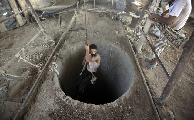 【事易时移:货道变逃生道】 这样的“购销两旺”一直持续到2013年。这一年,埃及总统、穆斯林兄弟会领导人穆尔西下台,加沙与埃及的关系急转直下。穆尔西政府倒台后,与哈马斯有着血肉联系的穆兄会被列为恐怖组织,哈马斯失去有力外援。埃及以安全为由,大规模破坏与加沙相连的地道,先是炸药炸、铲车挖,去年又开始向地道内灌注海水和污水,大量地道遭破坏坍塌。