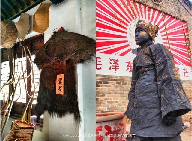 像一件道具一样屹立不动,村口一侧的铜人像墙上挂着的蓑衣一样,真正和环境融为了一体。连他背后的毛爷爷,也被他夺去了光芒。