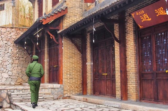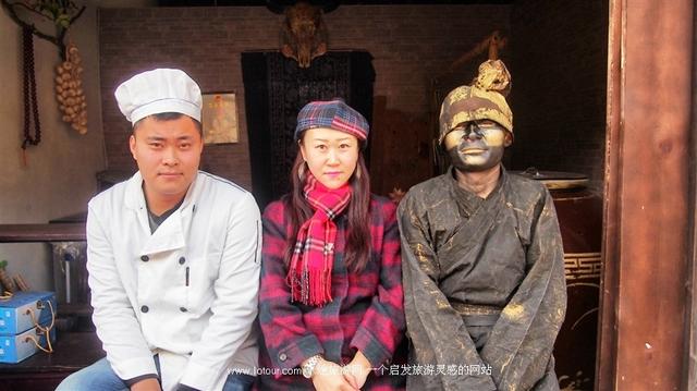 一直站在轿夫身下的铜人是初初来到民俗村就发现的惊喜,我凑上去观察了很久,铜人的妆发精致得以假乱真,只有眼睛里能看出一丝温度。尽管如此,他保持着高傲的职业素养,绝不在人前眨眼喘粗气,目视前方且纹丝不动,一时间让很多人信以为真。凑上去拍照,不敢靠近,生怕在按快门的瞬间,他望向我或是对我说话,那,我会瞬间崩溃。结果很遗憾,高傲如他,却望向了镜头,呈现出了和我合照的状态,破功!