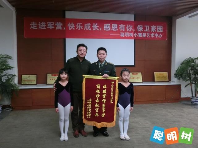 联欢会以《潇洒小女兵》为开场舞拉开了演出序幕,伴随着欢快的音乐,小朋友们在舞台上翩翩起舞,赢得了叔叔们热烈的掌声;聪明树国际小舞星的领导也代表中心师生为我们“最可爱的人”赠送了“萌娃妙舞献官兵,温暖挚情系军营”的锦旗。