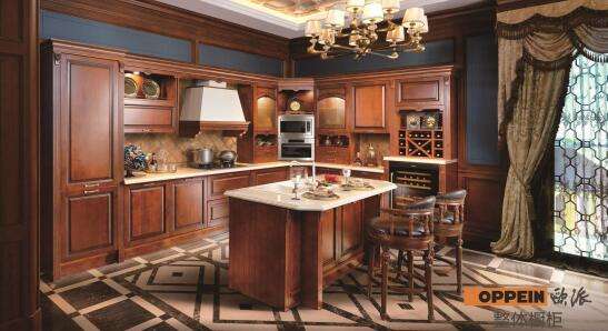 同时,这也是一套功能强大的橱柜。它的双层侧式拉篮形状狭长,非常适合存放罐状或瓶状物品,油盐酱醋各类调味品都有了“合身”的空间,而且相当稳固,做菜时顺手可取,烹饪过程井然有序。炉台下拉篮充分利用炉台下方鸡肋空间,超强的收纳分格件给各种碗碟容身之所,安全又卫生。在橱柜的转角,设计师将电器安放其中,扩大橱柜使用空间,使古典与现代艺术无缝融合。