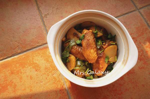后来某天,突然想起来大学时期经常吃的“重庆鸡公煲”,于是,就尝试重现了一下记忆中的味道,没想到还真做的八九不离十。所以,这也成了2015年,我最喜欢也最常做的一道菜。趁着刚出锅的腾腾热气,撒上香菜末,用砂锅保存的温度激发香气,等到再揭开盖子的时候,香~气~四~溢~ 荤素搭配,微辣鲜香,汤汁浓郁,配一碗白米饭简直再合适不过了!