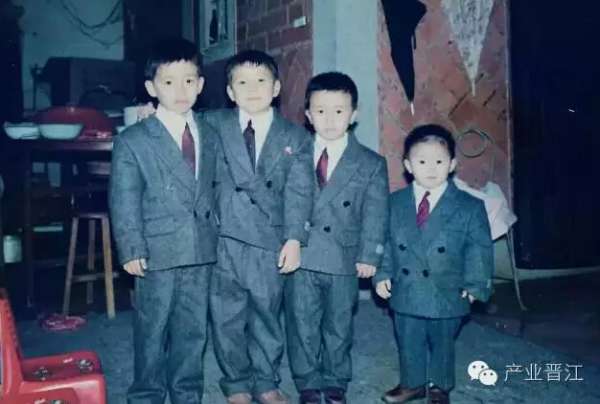 ▲右二男童为王俊宏,小时候穿着利郎西服和哥哥、堂兄弟合影