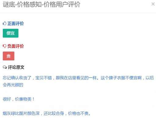 对于消费者来说,达衣岩衣服的性价比优于谜底。谜底的服装让人觉得偏贵,但是两个品牌衣服的定价相差不大,对于设计师品牌来说,性价比和个性化都是非常重要的,所以对于谜底来说,目前性价比这一块还需要大大地改进,适当地调整价格,和目标客户的消费水平相一致。