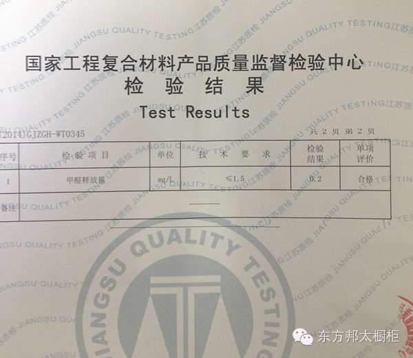 东方邦太橱柜始终以生产健康环保优质的产品为已任,凡东方邦太生产的产品除工厂有严格规范的自检流程外,还会定期送往国家最权威检测机构----国家工程复合材料产品质量监督检验中心,依据国家相关标准《GB 18584-2001》进行检测,并不定期地接受抽检。全年的所有检测合格,尤其在甲醛释放量上,不仅达到国家规定的小于1.5mg/L E1级限量标准,同时还达到了小于0.3mg/L的F★★★★级标准。
