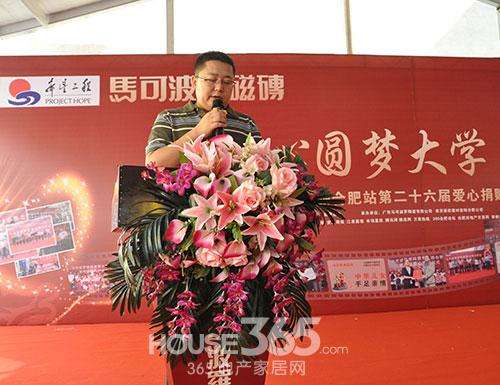 下午3点,马可波罗瓷砖爱心捐赠仪式正式拉开序幕。马可波罗瓷砖合肥总经理赵宇、国邦美家居·红旗卖场总经理贾庆杰、安徽省青基会副秘书长、安徽省希望工程办公室副主任章旻等参加此次捐赠活动。