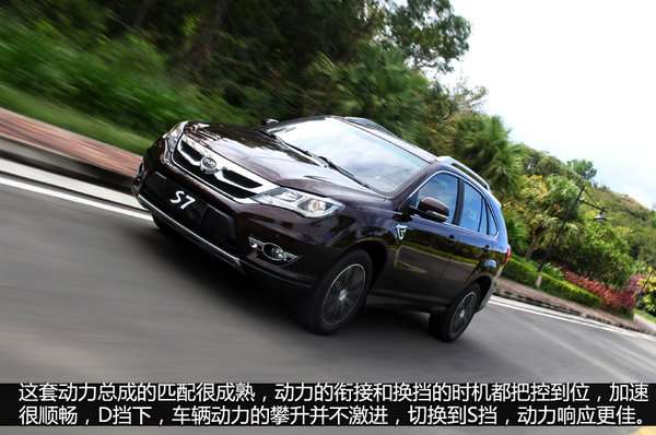 -4500rpm。变速箱方面,比亚迪S7采用的是6速双离合器自动变速箱并且具备S挡和手动加减挡。