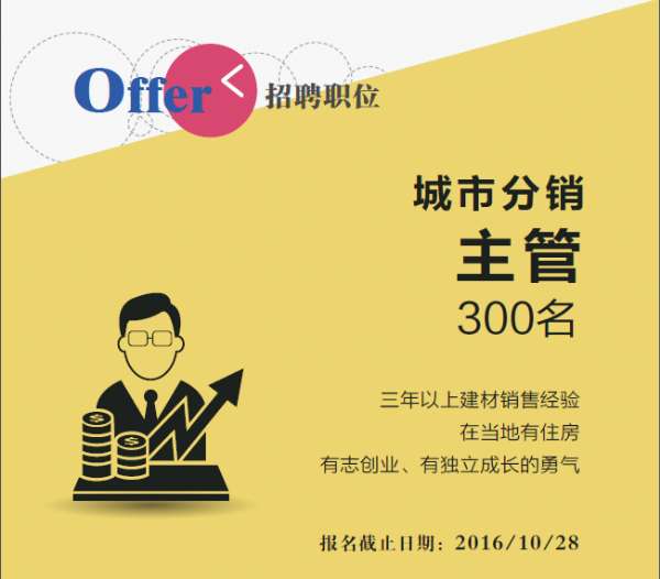 现急需大量人员在全国各地负责开发、服务当地东鹏客户,每个城市选一名,最好是本地人,吃住在当地。职责是:利用东鹏现有经销店面,扩充木地板销售,推广“全员营销,全地面成交”活动,同时在空白区域开发独立木地板专卖店。