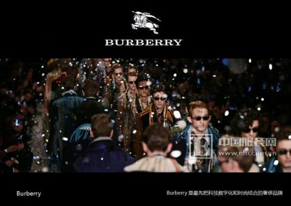 说到这些,简单提一下新科技的东西,那么我想接下来重点想讲的品牌是BURBERRY,BURBERRY是这次我跟牛顿商学院,我们去英国圣马丁学习的时候,今天圣马丁的专家也在,我们接触到BURBERRY的一个案例,其实之前都有在看,或者作为消费者我们在购买它的产品,但是我们对它背后的东西我觉得还是不够了解。我们刚才做奢侈品的老师也刚才讲了,是这样一个情况,但是普遍存在奢侈品品牌老化的问题,这是不容回避的,当然我们做的休闲服,美邦也存在这些品牌老化的问题。当时我们问了一个问题,问当时来给我们讲课的专家,BURBERRY的专家,我们问BURBERRY如何解决品牌老化问题,其实他没有全面回答我,他说BURBERRY是第一个将科技,结合在他的品牌里面的奢侈品品牌。