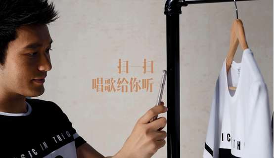音乐合作的T恤系列叫做“音乐态度”,由黄晓明担任代言人。每件T恤带有二维码,扫描二维码会直接连接到