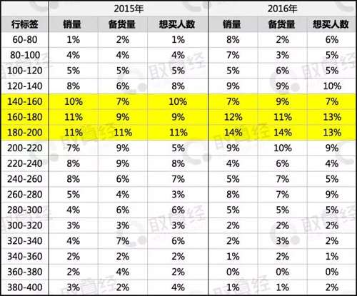 从类目上我们可以发现16年和15年存在这众多变化,这也是有可能导致销售下滑的,我们都清楚类目的销售是存在传承性的,在一个稳定的品牌每个月甚至每一年的类目销售情况不会有太多变化,而这次天平鸟女装做了很深度的调整,小编认为这一次调整太大了,将之前所有的TOP类目都进行了清洗,这无疑会影响销售。而从短期看16年的备货和销售的差异也存在很大的区别,为保持销售最大化,我们都希望备货占比等于销售占比。