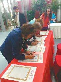 观众在馆内参观 国外艺术家在展览现场签到