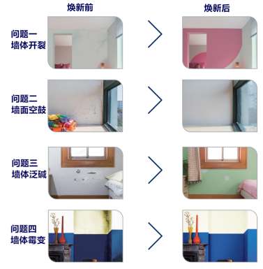 墙面的焕新并不是在墙面上涂刷上新的涂料这么简单,特别是对于二手房或居住多年的房屋来说,墙面都存在开裂、空鼓、霉变等大大小小的问题。所以,在涂刷前需要先对墙面进行“全面体检”,才能“对症下药”,解决墙面问题。选择多乐士焕新服务就是对家中墙面的一次“体检”和“治疗”,由专业人员发现墙面存在的隐性和显性的问题,并在涂刷前进行有效处理,才能让墙面由内而外焕然一新。