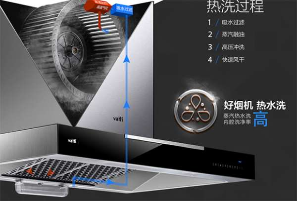该款华帝(VATTI)CXW-200-i11061欧式油烟机在清洗方面做到了蒸汽热水洗,经过四步:强劲智压泵,净化水质,保持畅吸;45s快速加热,喷射出高温蒸汽除垢融油;3D脉冲旋喷技术+反向冲刷,让烟机内部更为洁净;30s高速风干,风轮快速旋转,强劲风力快速吹干水分。可以定时清洗,持续清洁。烟机工作中虽然有18m3/min的大吸力效果,但是噪音却低至55分贝,舒适畅享厨房烹饪。