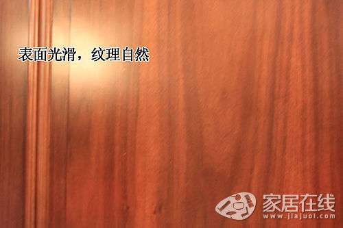 一、珊嘉这款木门采用实木压缩板作芯板,表面热压胡桃木,最后经过喷漆处理。家居在线小编近观木门,感觉纹理自然细致,整体偏红色调,在灯光下显得柔和典雅。这种天然的木纹纹理和色泽,对崇尚回归自然的装修风格的家庭来说,无疑是最佳的选择。