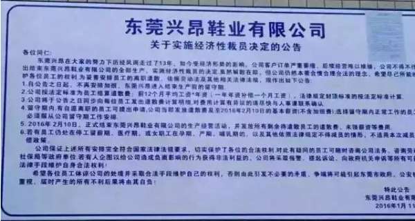 2016年年初,九兴这一全球最大时装鞋制造商的中国大陆最大制造工厂宣布其完成了阶段性使命。据东莞兴昂周一的公告,公司结业时间将为2月10日,东莞兴昂在员工公告中称将按照法定程序进行遣散,并补偿遣散员工费用。母公司九兴集团人力资源部主管钟伟杰表示,是次调整是关闭东莞兴昂所有生产单位,但仍保留研发、行政等部门,裁员涉及员工1900多人,停下的产能将往东南亚国家转移,原因则是人工成本的上升。