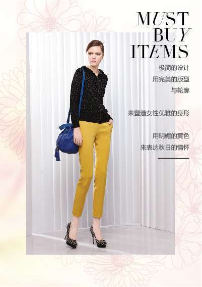 至境秋遇,JZ玖姿女装2014新款运用撞色、拼色等方式使用明色与暗色的交融,通过对不同面料的搭配和细节处理,在呈现秋日生机的同时表达成熟女性的时尚魅力。