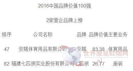 其中,安踏以品牌价值83.38亿元,位列榜单第47位;七匹狼以