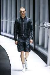 以茄克为核心进行整场秀的造型搭配,保持下装及配饰不变,通过茄克的变化,演绎不同的男性风格造型。