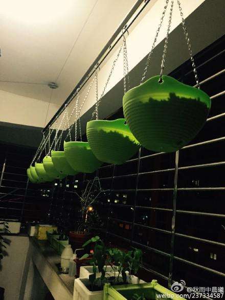 将吊兰、紫藤萝一类的绿植挂在晾衣架上,等到枝繁叶茂的时候,一定像极了垂泻而下的瀑布。但由于盆栽比较重,因此,选择升降晾衣架的时候要谨慎,一定要选择质量好,钢丝绳耐磨性和承重好的。