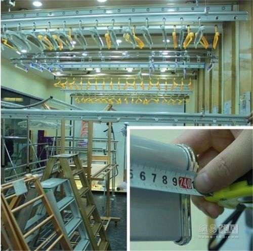 实地测量晾衣架双杆的长度,与标准尺寸2.4m基本符合,误差在允许范围内。
