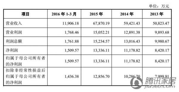 招股书显示,好太太2016年第一季度营业收入1.2亿元,净利润1500万元。