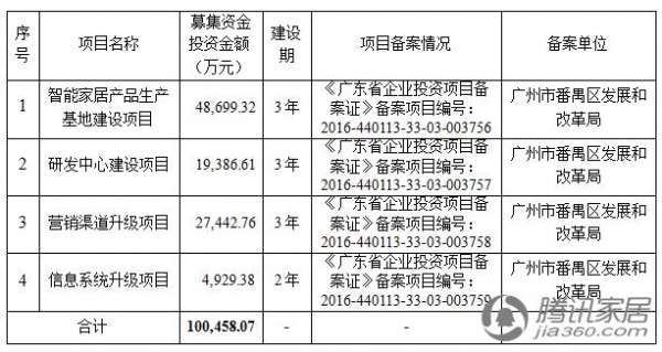 招股书显示,好太太本次公开发行A股的募集资金拟投入智能家居产品生产基地建设项目、研发中心建设项目、营销渠道升级项目以及信息系统升级项目。其中,智能家居产品生产基地建设项目本项目拟投资48,699.32万元,在广州市番禺区化龙镇金湖工业区建设智能家居产品生产基地,规划建筑面积总计约为79,200平方米。该项目将扩大公司智能晾衣机及其他智能家居产品的生产规模,丰富产品种类,优化产品结构,从而更好地满足市场日益多样化的消费需求。